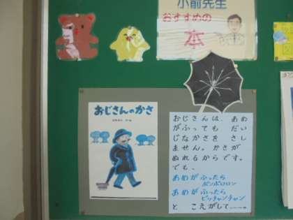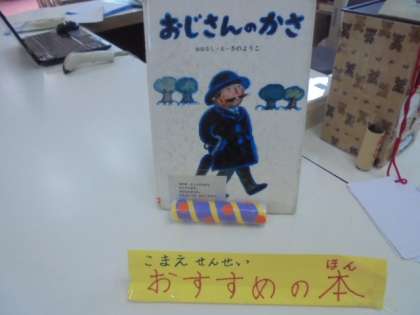 学校図書館補助員の小前先生おすすめの本が一冊増えました。「おじさんのかさ」です。