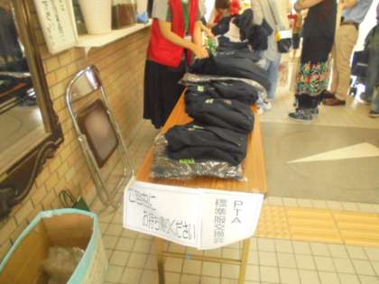 今日の塩草立葉ゲームフェスタに先立って、玄関でPTA標準服交換会を行っていただきました。大盛況でした!
