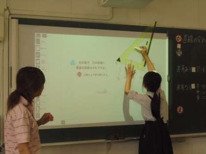 算数の学習で、デジタル教科書を使って、わかりやすく説明しています。