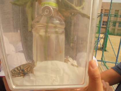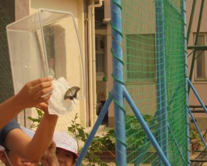 教室で大切に育てていた幼虫が、さなぎからあげはの成虫になりました。今朝は、大空への旅立ちです。目の前で飛び立ったあげはを子どもたちは大きな歓声をあげて、見送りました。