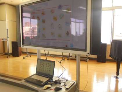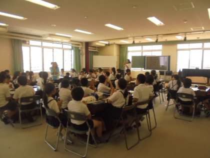 担任2人とエミリン先生が楽しく授業をすすめています。