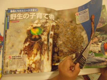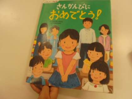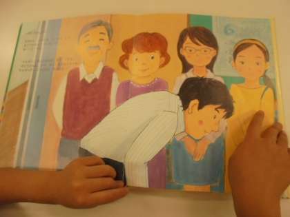 図書室で、本を読んでいます。楽しい本がいっぱいあります。