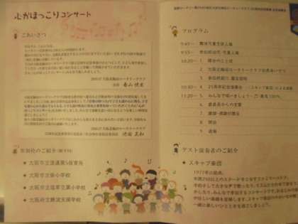 今日の午前中、4年、5年、6年生が大阪府立難波支援学校で開催された「心がほっこりコンサート」を鑑賞させていただきました。ゲスト演奏者のスキップ楽団の皆さんの演奏やダンス、音楽クイズなどに、子どもたちは大喜び!会場のだれもが心ほっこり、楽しい時間をすごさせていただきました。主催してくださった大阪北梅田ロータリークラブの皆様、ご招待くださった府立難波支援学校の皆様に、心よりお礼申し上げます。
