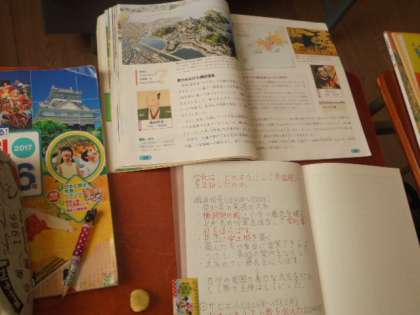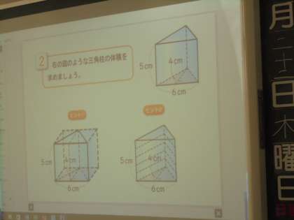 (上)社会科で、信長について学習しています。(中・下)算数科では、立体の体積について学習しています。