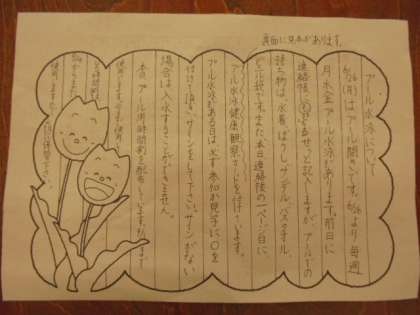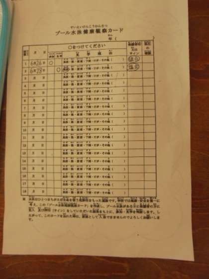 来週から、プール水泳が始まります。水泳学習のある日は、「プール水泳健康観察カード」に必ず記入してお子さんに持たせてください。よろしくお願いします。
