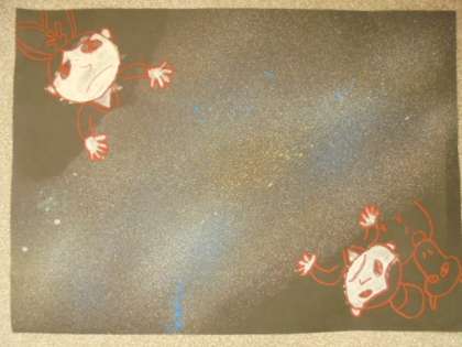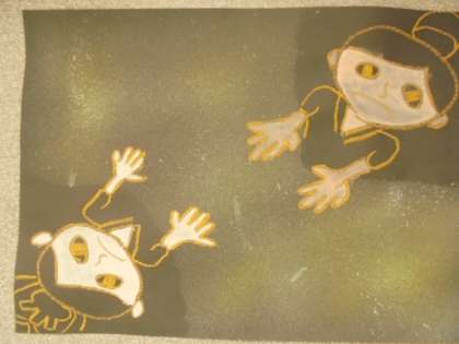 もうすぐ七夕です。色画用紙に、織姫と彦星を描いています。
