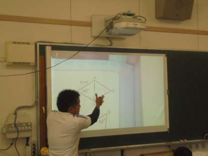 書画カメラを使って、図形についてわかりやすく説明しています。