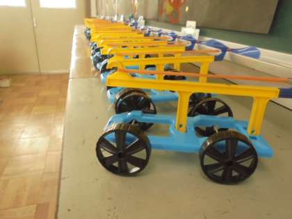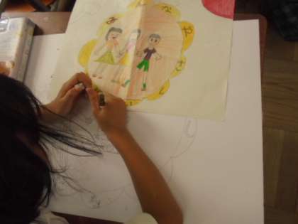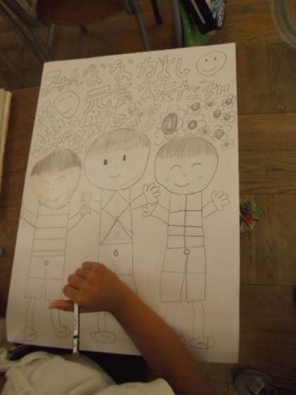 (上)プロペラカーのできあがりです。(中・下)平和ポスターを作っています。