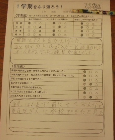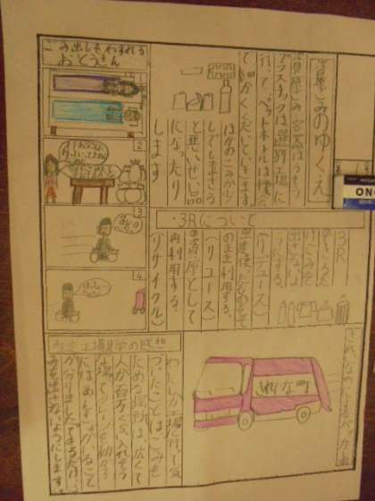 (上)1学期にがんばったことをふり返っています。(中)ごみとかんきょうについて、まとめています。(下)委員会活動についてまとめています。