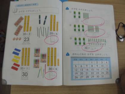 (上)さんすう「20より大きいかず」(中・下)ずこう「ちょっきんぱ」