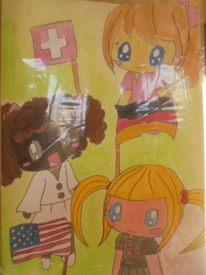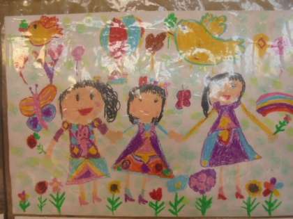 子どもたちが描いたポスターです。上から順に1年、2年、3年の作品です。
