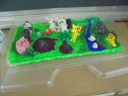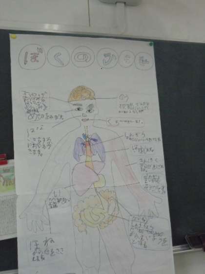 自由研究、自由工作など、みんながんばっています。(上)実物大のぼくのからだ(中)動物園(下)おおくわがた