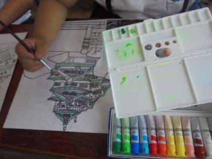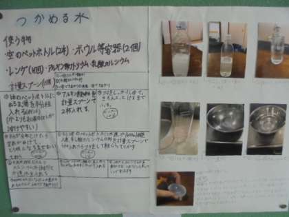 (上)算数(中)自由研究「つかめる水」大成功です!(下)図画工作「大阪城」