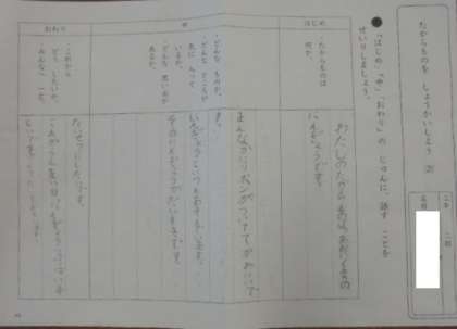 国語の学習です。(上)みんなの前で話そう(中・下)たからものをしょうかいしよう