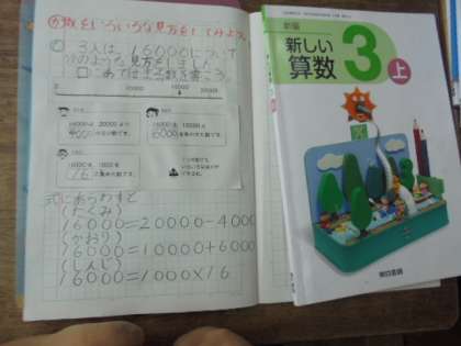 (上)算数の学習「数をいろいろな見方をしてみよう」(下)自由研究「メガ恐竜展」