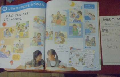 生活科の学習です。「じぶんの いちにちを みつめよう」