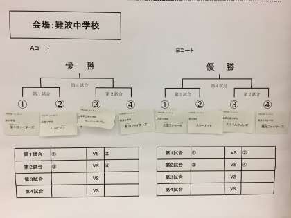 バレーボールの会場は、本校と難波中学校です。各2チームの計4チーム出場します。