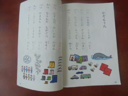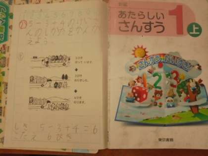 (上)国語「かぞえうた」の学習です。(中・下)算数「5−3+4のけいさんのしかたをかんがえよう」の学習です。デジタル教科書を使って、わかりやすく説明しています。