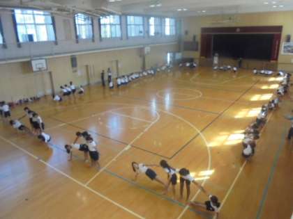 組体操の練習が進んでいます。みんなで力を合わせて!