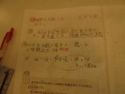 算数「速さ」の学習です。習熟度別グループで、工夫して学習しています。ノートも、上手に書いています。