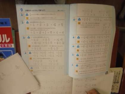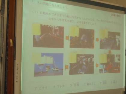 (上・中)算数の補充問題を学習しています。(下)社会で、自動車ができるまでを勉強しています。