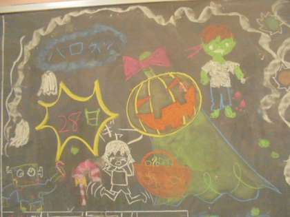 高学年の教室に、ハロウィンのイラストがありました。