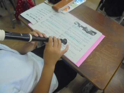 (上)算数の学習です。(中・下)音楽で、リコーダーを学習しています。