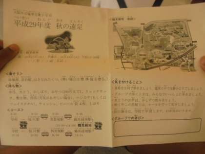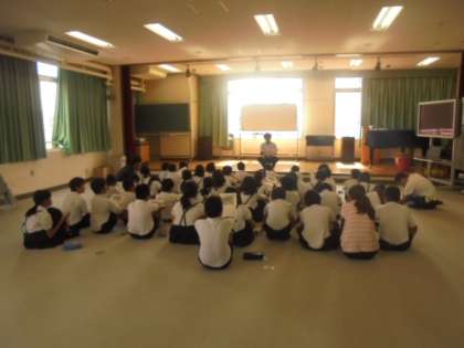 多目的室で、秋の遠足(10月17日 鶴見緑地)の説明をしています。