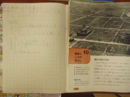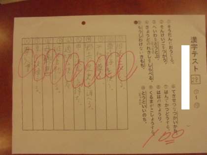 (上)社会「戦争と人々の暮らし」を学習しています。「下」漢字テストです。おめでとう!100点。