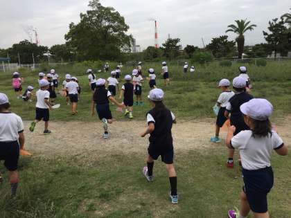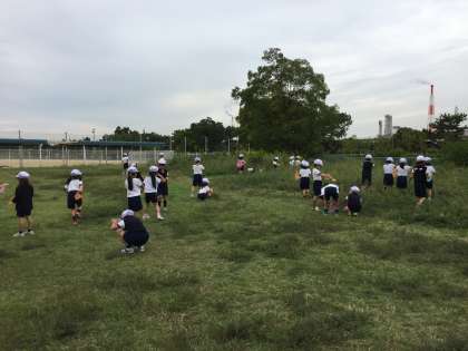バッタ名人の指導のもと、子ども達はバッタ取りに夢中でした。バッタを初めて触る子もいて、とても良い経験ができました。