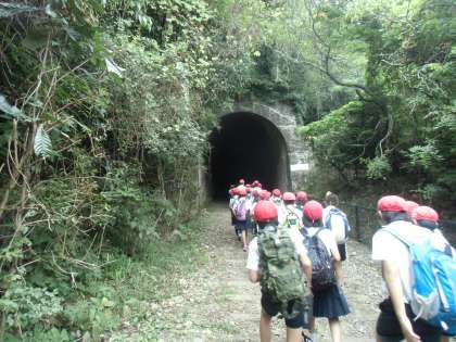 廃線跡では、枕木や橋梁、そして子ども達がとっても楽しみにしていたトンネル。