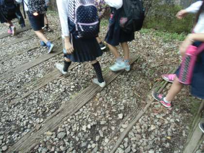 13日 金曜日 5年生は 旧国鉄 福知山線の廃線跡にハイキング遠足に行きました。