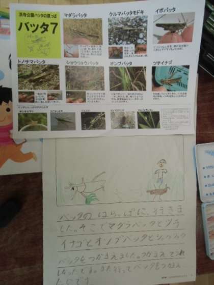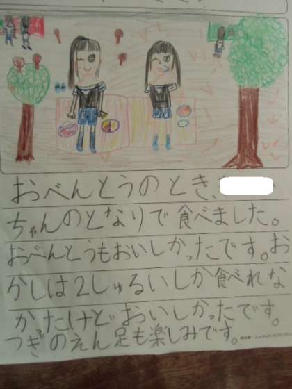 (上・中)浜寺公園に遠足で行ったことを絵日記にしています。(下)教室で2年生が読んでいた本です。