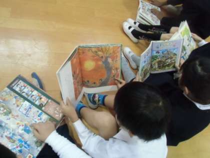 今朝の児童集会では、たてわりグループに集まって、子どもたちが読書をしました。お気に入りの本を持ち寄り、みんな集中して読んでいるのが素晴らしいです。