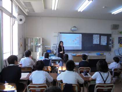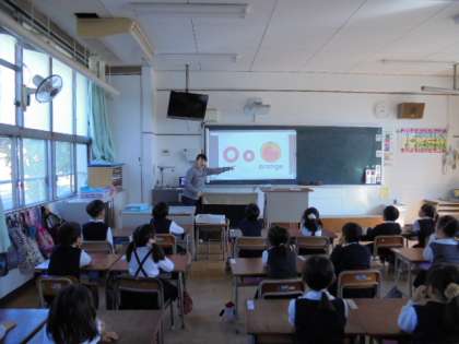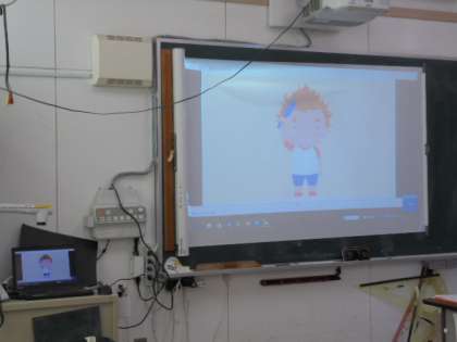 金曜日の朝は、全学年一斉に英語学習をしています。短い時間ですが、子どもたちはとても楽しみにしているようです。(上)1年生(中)5年生