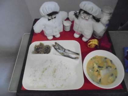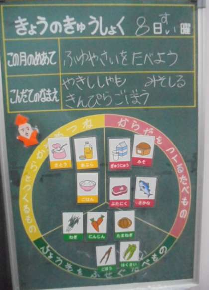 今日の献立は、焼きししゃも、みそ汁、きんぴらごぼう、ごはん、牛乳です。