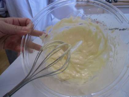 卵黄、酢、塩を合わせ、そこに植物油を少しずつ加え、ひたすら混ぜ続けること15分。その間、材料が混ざって乳化していく様子に「うわぁ、トロトロになってきたぁ。」と驚きを隠せない子ども達。