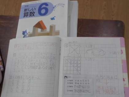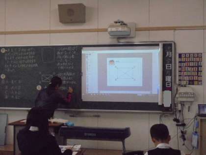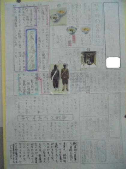 (上・中)算数の学習です。デジタル教科書を使って、授業がわかりやすくなるよう工夫しています。(下)「ピースおおさか」の社会見学で学んだことを新聞にまとめています。