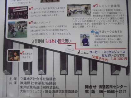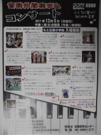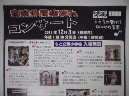 12月3日(日)午後1時30分より、もと立葉小学校で音楽コンサートが開催されます。(主催:立葉地区社会福祉協議会)ぜひ、ご参加ください。