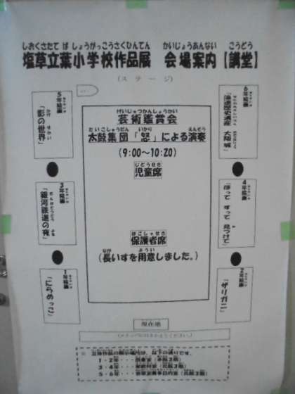 今日は、芸術鑑賞会(太鼓演奏)・作品展です。朝から、子どもたちはワクワクしています。