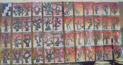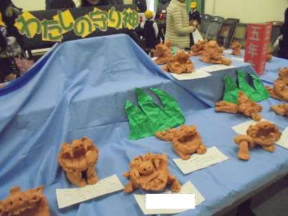 5年の絵画作品「影の世界」、工作作品「わたしの守り神」