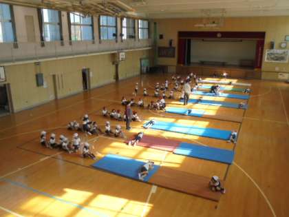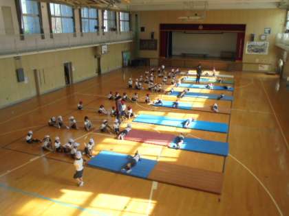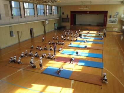 体育館で、マットの上をコロコロ。気持ちよさそうです。