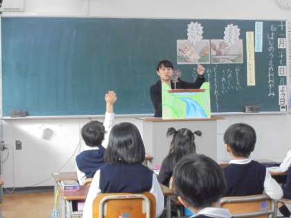 今日の5時限目は、1年2組藤本先生が研究授業をしました。道徳の「橋の上のオオカミ」という題材です。藤本先生が作ったペープサートを使ったり、子どもたちが一生懸命意見を発表したりして、素晴らしい授業になりました。