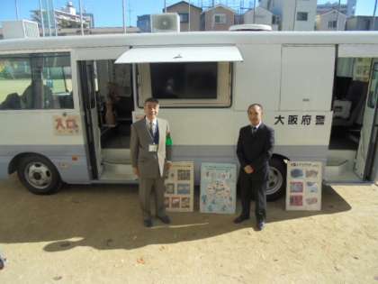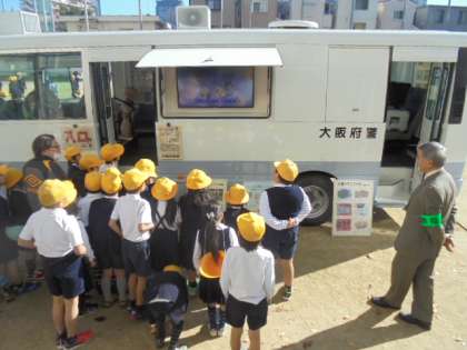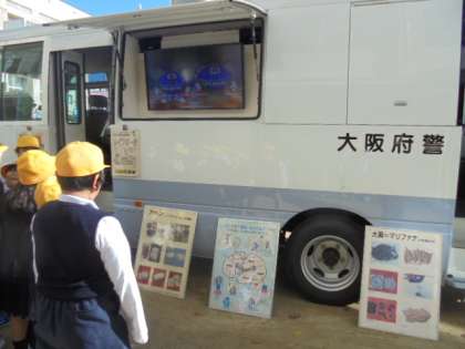 浪速警察署の方々が、薬物乱用防止広報車(レインボー号)に乗ってお越しくださいました。休み時間に子どもたちが次々と乗り込み、説明を聞かせていただきました。お忙しいところ、ご協力くださりありがとうございました。