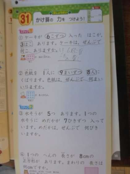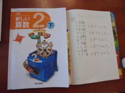 算数の学習です。かけ算九九、がんばっています。