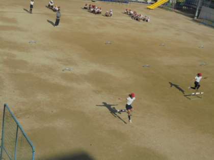 (上)体育科の学習で、ハードル走をしています。(下)音楽の学習です。「ハナミズキ」の曲を習いました。