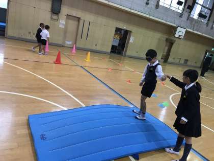 講堂で、アイマスク体験をしました。先日の盲導犬ユーザーをお招きした特別授業に続いて、子どもたちに優しい心をはぐくんでいます。