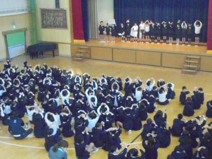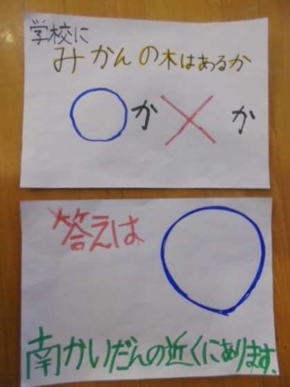 今朝の児童集会は、栽培委員会の皆さんによる○×クイズです。楽しい問題をいくつも考えてくれました。