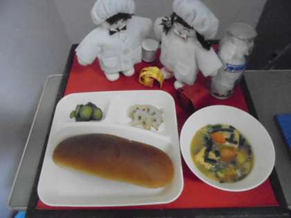 今日の献立は、中華煮、れんこんのオイスターソース煮、きゅうりの辛みづけ、パン、牛乳です。