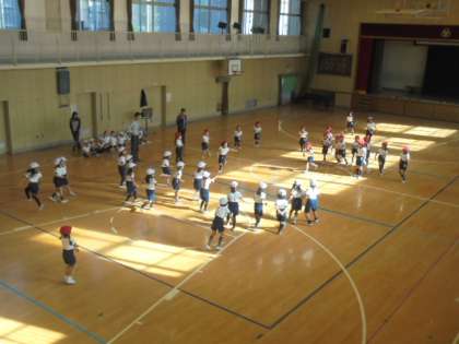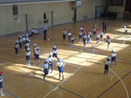 体育館で、ドッジボール!元気な声が聞こえてきました。